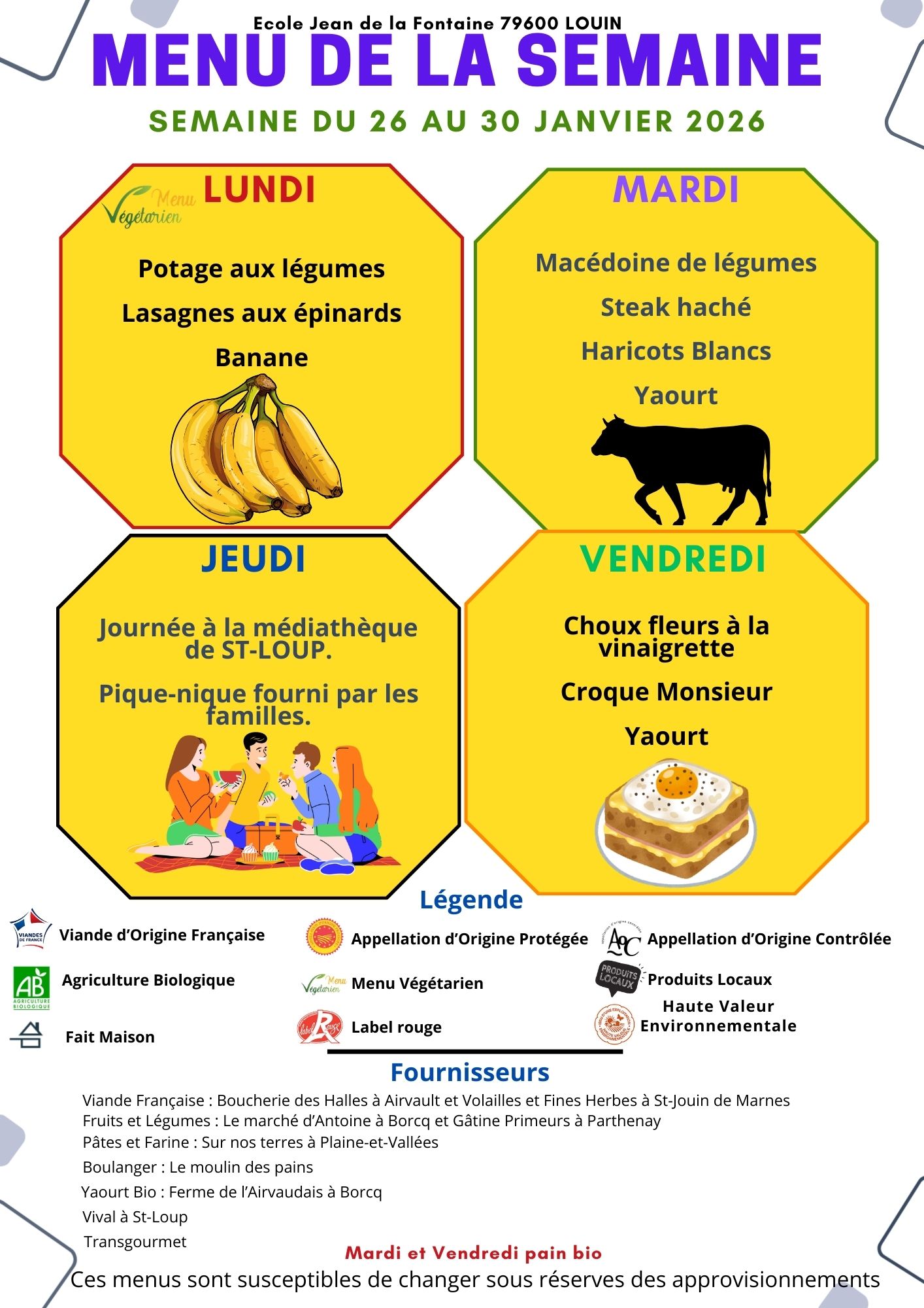 Cliquez ici pour télécharger le menu de la semaine